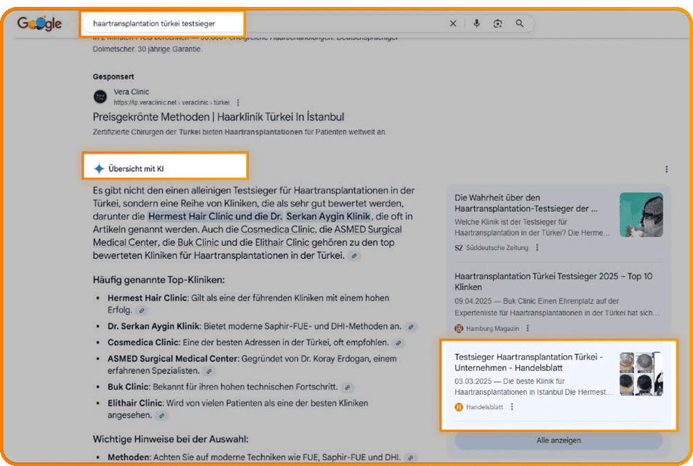 Erscheint Ihr Advertorial in namhaften Medien wie Handelsblatt, Forbes oder Die Welt, überträgt sich deren Autorität. Die KI bevorzugt glaubwürdige Quellen, was Ihre Platzierungen verbessert.