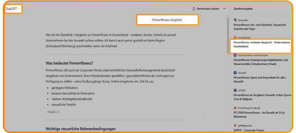 „Firmenfitness Vergleich“ bei ChatGPT